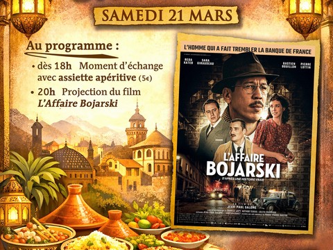 Au programme : dès 18h, un moment d’échanges autour d’une assiette apéritive, suivi à 20h de la projection du remarquable film de Jean‑Paul Salomé, L’Affaire Bojarski.